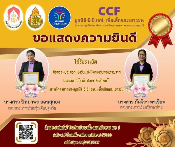 ขอแสดงความยินดีกับคณะครูที่ได้รับรางวัลประกวดแข่งขันแต่งนิทาน